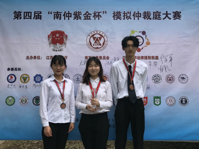 6月1日,由江苏省司法厅、南京市仲裁委以及江苏高校法律援助联盟主办的江苏省第四届“南仲紫金杯”模拟仲裁大赛决赛暨闭幕式在南京审计大学文心楼拉开帷幕。人文学院王逸菲、孙叶、李昊翰同学在黄昕老师的带领下参加决赛及闭幕式,并荣获申请人组季军的佳绩,同时我院荣获优秀组织奖。