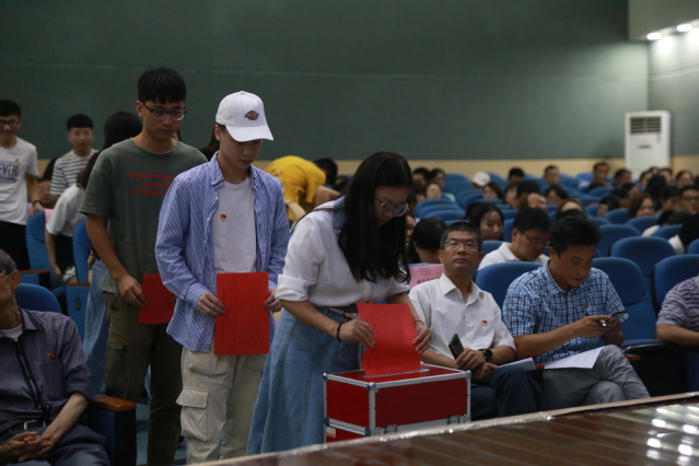 大会通过了选举办法,通过了总检票人、监票人、计票人名单。最终,采取差额和无计名投票方式,选举马跃勇、李新民、陈仁平、吴恒心等4名同志为中共南京理工大学第十二次党员代表大会代表。