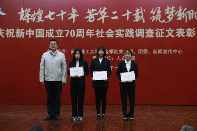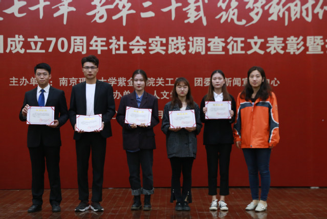 据悉,今年我校共有8支实践小分队获得了江苏省“力行杯”社会实践重点立项项目,其中南京市黄龙岘美丽乡村建设调研实践小分队在共青团江苏省委组织的评比中荣获二等奖;我校参加南京理工大学关工委、团委组织的“庆祝新中国成立70周年”调查报告征文比赛中获一等奖1项,三等奖1项,优秀奖1项;我校选送的4篇读书报告参加南京理工大学关工委组织的“庆祝新中国成立70周年”《祖国是我家》读书征文比赛中获二等奖2名,三等奖2名。