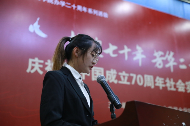 在校关工委副主任崔连昌老师代表关工委、团委、新闻宣传中心汇报组织本次“庆祝新中国成立70周年”调查实践和《祖国是我家》读书活动的情况之后,党政办副主任、新闻宣传中心主任马欣宣读了关于表彰“庆祝新中国成立70周年”调查报告优秀征文、《祖国是我家》读书活动积极分子及优秀指导老师的决定。校党委副书记、副校长、关工委副主任吴恒心等领导分别为43名获奖的学生及团队代表、15名优秀指导老师颁发了奖状。人文学院陈冬老师代表优秀指导老师讲话,他认为大学生参加社会实践既是接触社会、了解社会、服务社会的重要学习过程,也是养成良好品质、增长才干、实现全面发展的重要途径。陈冬老师还从组织动员、实践指导、实践效果等三个方面和大家分享了体会。