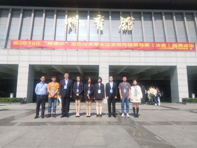 10月19日,2019年“纳德杯”重庆市大学生公文写作技能竞赛决赛在重庆科技学院举行。在人文学院公共管理系主任陈冬老师以及刘红祥老师指导下,我校人文学院公共事业管理专业8名同学在3万多参赛人员中成功晋级决赛,与重庆大学、西南政法大学等全国68所高校1200多名选手同台竞技,在首次参与该项比赛中就取得了优异成绩,共获得二等奖2项,三等奖5项,获奖比率在参赛高校中遥遥领先!