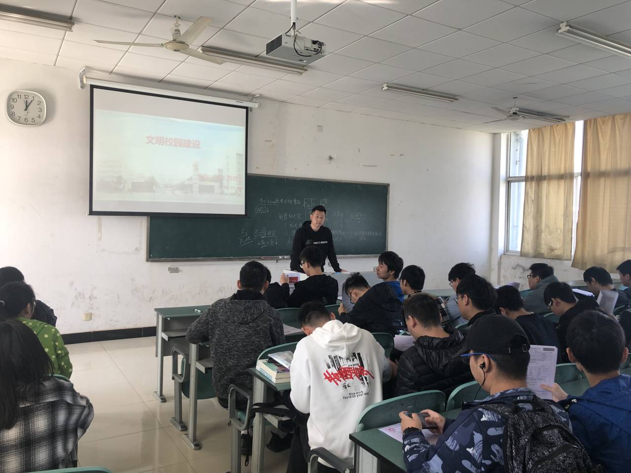 在会议期间各班委也都认真做好笔记,做好足够准备以便后续开展班级会议时能够向同学们传达到位。随后,各班就“高校文明建设”这一主题,相继开展了班会。