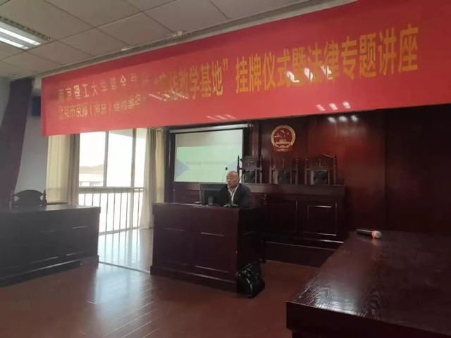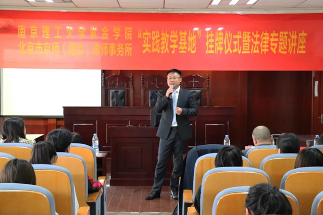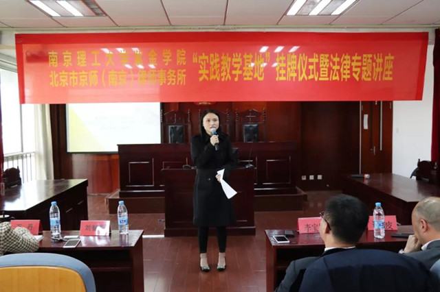 2019年11月14日下午2时许,星空彩票娱乐平台登录、北京市京师(南京)律师事务所“实践教学基地”挂牌仪式在星空彩票娱乐平台登录模拟法庭举行。北京市京师(南京)律师事务所执行主任李宝团主任、北京市京师(南京)律师事务所专业指导委员会主任谭波主任、人文与社会科学学院院长刘智芳院长、法学专业负责人黄昕老师及法律系王丹老师出席本次活动。之后谭波主任为大三法学生带来了精彩讲座。