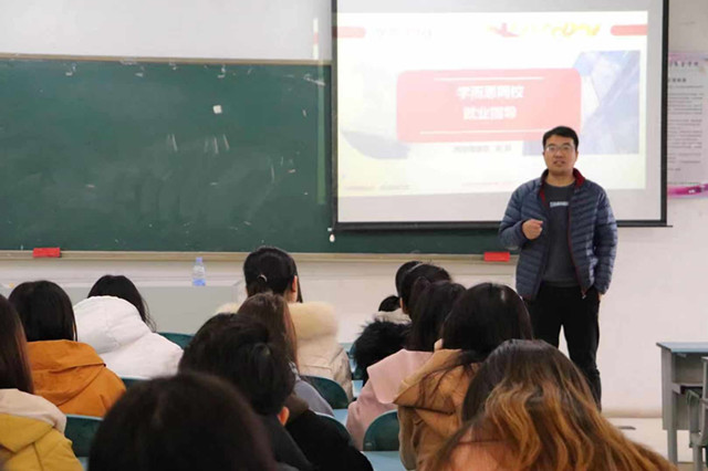接下来是面试环节,陈醉老师提醒大家要留意面试通知,避免错过面试信息。他提出面试现场如同战场,知己知彼,方能百战不殆。他指出如果应聘者能预先了解企业的价值观,将帮助其在面试时最大限度地展示自己。最后,他在就业方向上给予了大四毕业生们一些中肯的建议,并与大家分享了他工作上的经验。