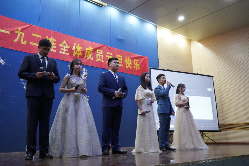 在几位班长精彩表演谢幕之后,由第二教育班的助理们组成的团队亮相在今晚的舞台上,西装革履,顾盼神飞,隆重的介绍了莅临本场的嘉宾,晚会正式开始!