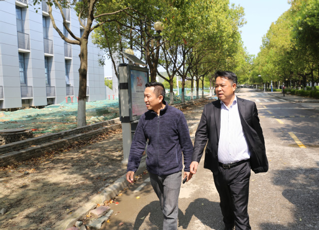 4月9日上午,陈瑞生董事长来校检查疫情防控和开学准备工作。在校长助理于洋和相关职能部门工作人员的陪同下,陈瑞生细致查看了校园环境卫生、校内隔离点布置、防控物资储备以及基建工程进展情况等。
