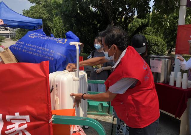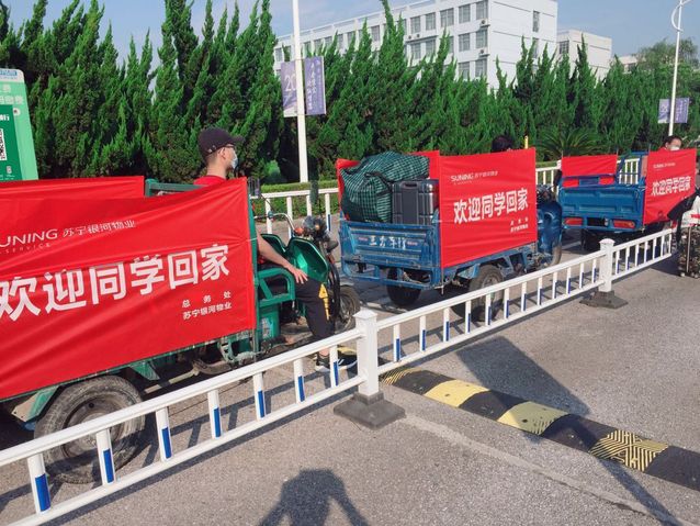连日以来南京的高温为返校接待工作人员带来了不少困难,但是接待工作人员和志愿者冒着酷暑,从清晨忙碌到深夜。苏宁银河物业作为学校“物业管家”,也为迎接学生做好了周全的准备。暑期里,他们对宿舍楼、教学楼进行了消杀清洁整理,张贴疫情防护知识标识。由于疫情特殊期间,家长无法进校送行。苏宁银河物业对此准备了爱心服务车,帮助同学们往返校门和宿舍楼,一趟趟帮助同学们搬运行李。他们始终执着地坚守在各个指定接待岗点,用热情的眼神、温馨的话语和耐心的守候,给返校学子带来了回家般的亲切感。