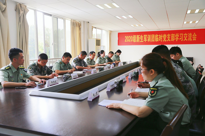 9月25日上午10点,2020级新生军训团临时党支部学习交流会在行政楼201会议室组织召开。军训团政委、副校长吴恒心、副政委、临汾旅司长靖上尉、副参谋长黄哲琼以及全体党员教官、指导员参加了此次会议,大会由副参谋长黄文涛主持。