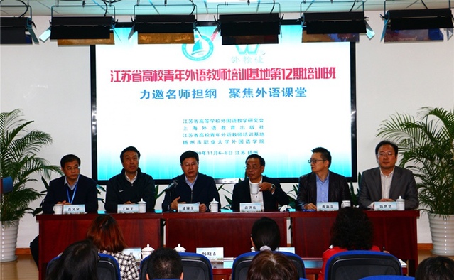 11月6日-8日,江苏省高校青年外语教师培训基地第12期培训暨第三届江苏省高校青年外语教师奖教金颁奖典礼在扬州市职业大学举行。人文学院外语系戚佳鸣老师荣获江苏省高校青年外语教师奖教金一等奖,受邀参加颁奖典礼;外语系吴培老师、吴彤老师和来自省内其他院校的100多名学员一起参加了“江苏省高校青年外语教师培训基地”第12期培训班。