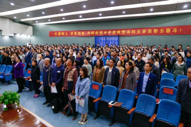 11月11日下午,中共星空彩票娱乐平台登录党员大会在学校小报告厅隆重举行。南京理工大学组织部王立新同志应邀出席大会,全校师生党员参加会议,民主党派人士和部分二级单位(部门)负责同志作为特邀代表列席会议。大会的主题是:高举中国特色社会主义伟大旗帜,以习近平新时代中国特色社会主义思想为指导,加强党的建设,引领学校全面工作再上新台阶;以建成高水平应用型大学为目标,稳步推动转设,创新体制机制,提高治理能力;以内涵建设为重点,落实立德树人要求,着力提高教育教学和星空彩票苹果app质量,提升科学研究水平和服务社会能力;以队伍建设为抓手,引培并举,建设特色校园文化,汇聚各方面力量,为建设高水平应用型本科大学而努力奋斗。
