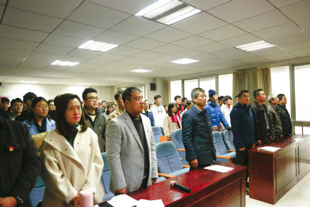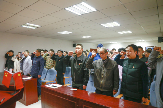 在党委委员、校长助理余志科同志的领誓下,全体党员面对中国共产党党旗,郑重举起右拳,重温入党誓词。铿锵有力的宣誓声,让在场的每一位同志再次接受了深刻的党性教育和灵魂洗礼。