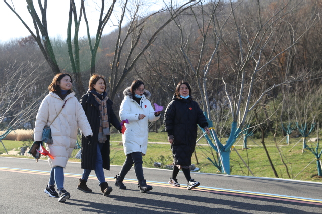健步行活动以图书馆广场为起点,出学校南门沿仙境路达到羊山湖公园,穿过公园彩虹路从九乡河西路、文澜路返回学校,全程大约4.5公里,为让教职工在健步行的同时感受到更多乐趣,工会不仅特意设置了更有挑战性的登山路线供大家自由选择,还在线路中精心准备了打卡游戏点,让教职工们既能得到短暂休息,又能享受小游戏带来的欢愉。