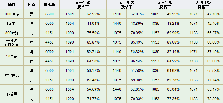 大学生体质健康检测能对大学生的身体素质进行全面深入考核,综合掌握当代大学生身体素质状况,并依据得出的结论进行有针对性的研究和分析,提出增强学生体质的相关方案和计划,进而帮助学生养成健康良好的运动习惯,整体提高年轻一代的身体素质水平。按照学校《本科生培养方案》的要求,每年必须对在校本科大学生进行体质健康测试。学生在校期间,每年必须上报学生测试数据。