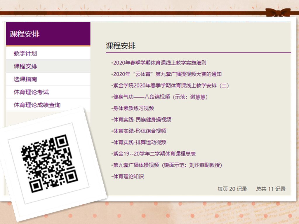 实践离不开理论的指导,为了引导同学们深入的理解体育理论知识,从思想层面上意识到体育的重要性,并能运用所学的体育知识指导自己的运动锻炼,体育部袁夕坤主任与朱杰老师分别制作了《科学体育锻炼的方法》与《体育卫生与保健》两个课件并向校大一、大二两个年级全体学生讲授。此外,体育部全体教职工在袁夕坤的带领下,创建了体育理论试题库。为方便快捷的进行线上考核体育理论知识,体育部在南大出版社工作人员的协助下创建了体育理论知识考核软件,同学们只要通过手机扫描二维码,输入自己的姓名学号即可进行线上考核。