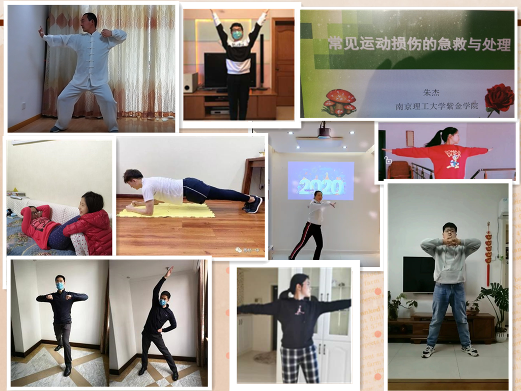 受到疫情影响,开不了学,很多学校开起了网课,学生在家就能上课,老师纷纷拿起手机、电脑,变成在线教学主播。我校体育老师也不例外,受到本次疫情的影响开启了人生的第一次体育网络教学。与理论课相比,体育网略教学是一个新鲜的事物,对任何一个体育教师来讲都是人生体育教学生涯中的严峻挑战。在体育部全体教职工多次线上会议讨论下,决定充分发挥MOOC、钉钉、QQ、微信等互动平台,统一教授第九套广播体操与八段锦,监督同学们进行仰卧起坐、平板支撑、跳绳、俯卧撑等居家可行的身体素质锻炼,而且还制作了体育理论课件,把线上理论考核纳入本学期的体育成绩中来,不仅最大限度地减少疫情对学生学习的影响,还丰富了体育考核的内容,受到学生广泛好评。