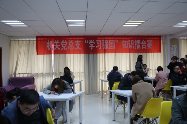 3月31日,机关党总支“学习强国”知识擂台赛第一场比赛在行政楼党群工作室拉开帷幕。“学习强国”知识擂台赛是机关党总支为庆祝建党100周年,弘扬爱国主义精神,加强爱国主义教育,加深党员对党的知识学习理解而开展的竞赛活动。比赛以支部为单位进行单循环积分赛,利用“学习强国”平台中的“双人对战”模式进行,从3月到6月,每月将举办一场,每场五轮。