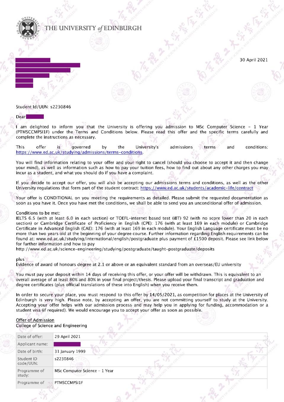 被爱丁堡大学录取!!!