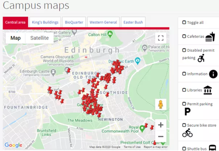 爱大主要可以分为位于市中心的乔治广场区(George Square)和位于爱丁堡南郊的国王大厦区(King’sBuildings)。