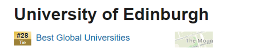 地理位置 爱大位于苏格兰首府爱丁堡市中心。爱丁堡位于英国北部,距离伦敦需一个多小时的飞机,机场离爱大20分钟车程。爱丁堡是英国主要的社会、文化和交通中心。在经济上,爱丁堡主要依靠金融业,是伦敦以外英国最大的金融中心。爱丁堡被联合国教科文组织授予世界第一座“文学之都”,诞生了如《福尔摩斯探案集》、《哈利·波特》等著名文学作品。作为15世纪以来就一直是苏格兰首府的爱丁堡,其旧城区是中世纪堡垒,新城区是新古典主义风格建筑,旧城和新城被联合国教科文组织列为“世界遗产”。有很多古迹如爱丁堡城堡、王子街、苏格兰皇家博物馆、苏格兰国家图书馆和卡尔顿山等。爱丁堡被世界旅游业联合会授予“欧洲最佳旅游目的地”,是公认的欧洲最富吸引力的城市之一。