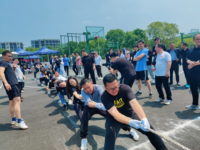 教职工趣味运动会也同期进行,8字长绳、众星捧月、车轮滚滚、拔河、10*50迎面接力、龟兔赛跑等集体项目形式新颖,趣味十足,教职工们通力合作,奋勇争先,在运动中收获了快乐,在比赛中培养了团队协作精神,展示了我们紫金学院教职工的风采!