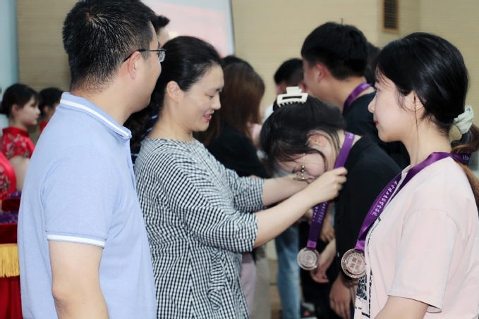 最后,由学院党政负责人为优秀学子颁发“紫金奖章”。这是紫金学子为之奋斗的奖章,更是满含紫金母校对优秀学子们肯定与期望的奖章。学子们佩戴着奖章并且合影留念,奖章象征着他们努力奋斗的过去,同时也包含着母校对他们未来无限的期望。