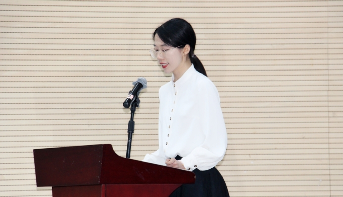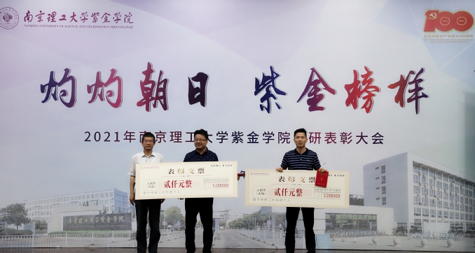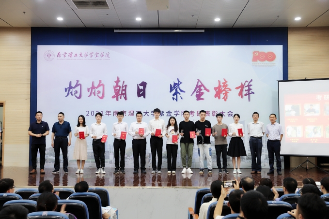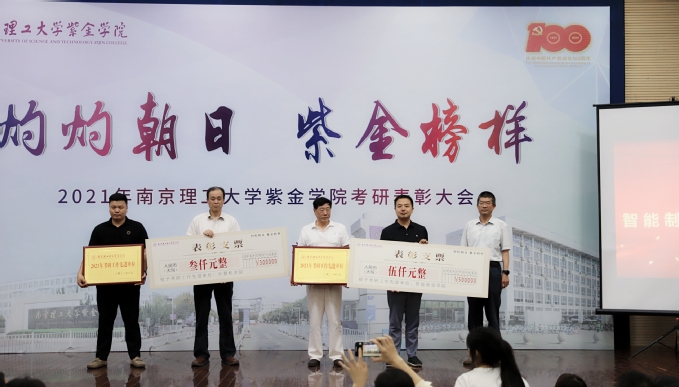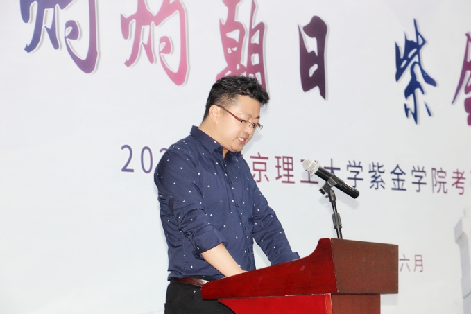 紧接着,校领导上台为2021年“考研之星”颁发奖杯和荣誉证书。今年在全校范围内共选拔了10位考研优秀代表作为紫金“考研之星”进行表彰。在他们之中,商学院会计专业的王玥作为代表上台发言。她分享了考研的心路历程,王玥同学的坚定与执着感染着在场的每一位观众,也给低年级的同学以鼓舞。随后,辅导员陈修玮和班导师包志家先后上台发言,分享他们在工作中的良好做法。