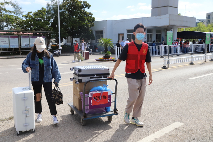 穿着红马甲的志愿者们遍布在紫金校园各处,学长学姐组成的志愿者温馨引导、贴心服务,给刚入学的新生提供详尽的答疑。尽管陌生,但充满爱,最饱满的热情,最贴心的服务,最灿烂的微笑所有的一切,只为迎接你们的到来。