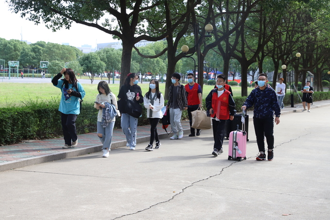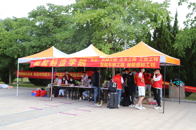 2021年10月12日-13日,来自五湖四海的学子,手捧录取通知书,带着梦想踏入紫金校园。初入校园,一排排迎新帐篷、迎新标语和引导牌错落分布,校园处处干净整洁,学工处、保卫处、总务处等部门各司其职、相互配合,严格执行疫情防控要求,筑牢校园疫情防控安全防线,为新生们入学保驾护航。