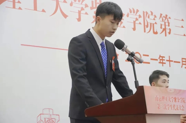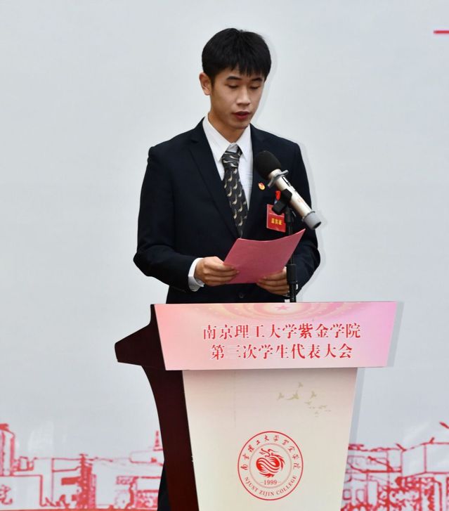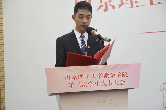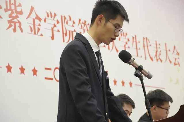 学生会主席团成员兰海涛在闭幕式上向各位代表和广大青年学子宣读倡议书,他倡议青年学子勤勉学习,刻苦求真,人生在勤,不索何获。大学滋养了无数年轻人的梦想,作为紫金学子,我们更应该珍惜当下。青年是国家的未来,民族的希望,青年兴则国兴,青年强则国强。青年作为新时代长征路上的开拓者、奉献者、奋进者,当为中华民族伟大复兴贡献属于自己的力量,国家有前途,民族才有希望。身为紫金青年,必当坚定信念,刻苦求真,把握时机,求实创新,志存高远,在实践与奋斗中书写华丽篇章!