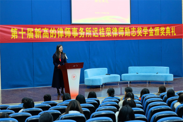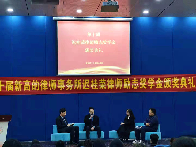 会议伊始,刘智芳致辞,并讲述了她和迟桂荣律师的结缘,讲述了该奖学金设立十年的感想。随后迟桂荣表示很荣幸能在紫金学院设立这样一项励志奖学金,她看到了紫金学院法学老师那种恪尽职守的敬业心,并见证了设立奖学金这十年以来53位优秀奖学金获得者的成长。