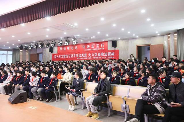 为大力弘扬宪法精神,进一步增强青少年社会主义法治观念,12月3日下午人文学院法律系、栖霞区司法局马群司法所、栖霞区人民法院栖霞法庭、马群街道关心下一代工作委员在南京市一中马群分校联合组织开展第八个“国家宪法日”、第四个全国“宪法宣传周”主题宣传活动。