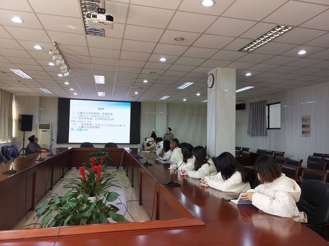 随后,唐宝莲老师在会议室为同学们做信息检索讲座,介绍了文献平台的组织架构、资源组成;文献平台的两种使用方法介绍——原单库检索和一站式检索;文献信息深度服务以及科译协正在进行的课题情况。在介绍文献检索过程中,重点强调了高级检索中“或”、“与”、“非”这三个概念的重要性。最后,根据同学们的兴趣方向,鼓励大家积极参与课题研究。同学们将主要在“青少年科技教育”、“科普人才队伍建设”等课题中参与实践学习,发挥自己的专业特长。