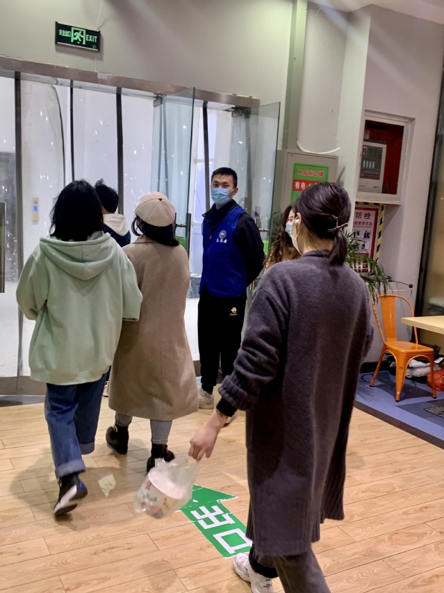 计算机学院抗疫党员先锋志愿者队兵分两路,一部分志愿者在食堂定点值班,开展入口体温检测、提醒学生佩戴口罩、提示排队间距、安排间隔就餐等相关防疫工作。同学们拨开门帘,在志愿者的提示下将胳膊伸出并靠近红外测温仪,接受测温。时不时会看见进入食堂未佩戴口罩的同学,此时综合服务台的志愿者会对其耐心嘱告,同学们也会主动积极地配合志愿者的工作。排队买饭时,志愿者会提示1m距离间隔;若有人堂食就餐,随时提示间隔落座,每一环节都在认真把控。 一楼食堂实行“南门进 东门出”的防控措施。如果看见准备从东门进入的同学,东门口的志愿者会走上前,友善地对其进行劝阻。被提示的同学也会意识到自己的错误,深感防控要求的不容践踏,并自觉绕行。
