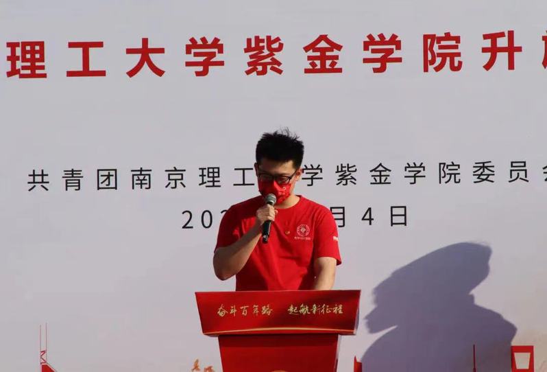 仪式上,任治洲作为优秀团员代表发言。他表示作为新时代青年,大力发扬五四精神,必须树立报效祖国的远大志向。正如习近平总书记所强调的,青年一代的理想信念、精神状态、综合素质,是一个国家发展活力的重要体现,也是一个国家核心竞争力的重要因素。“青年须早为,岂能长少年”。他代表紫金学子唱响新时代的青春之歌。紫金学子必将励学笃行,用青春之力承载起国家和民族的光明未来。