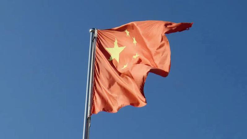 在国歌声中五星红旗冉冉升起,在场的同学们敬礼仰望,为我们伟大祖国的日益繁荣昌盛而自豪。