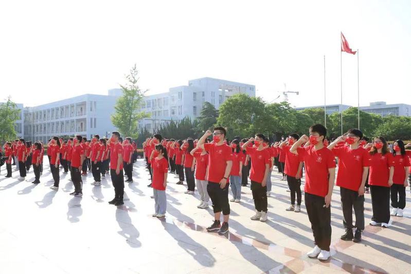 青春心向党,建功新时代。为进一步学习贯彻习近平总书记在中国人民大学考察时的重要讲话精神,缅怀革命先烈,弘扬五四精神,5月4日上午7时,学校团委在图书馆广场举行升旗仪式。按照疫情防控工作要求,校党委委员、副校长余志科、校学工处和团委负责人、各分院党总支书记、校院两级团学骨干代表、基层团支书代表线下参加升旗仪式,全校团员相聚“云端”,线上参加升旗仪式,共同庆祝“五四”青年节。升旗仪式由校团委副书记张雪飞主持。