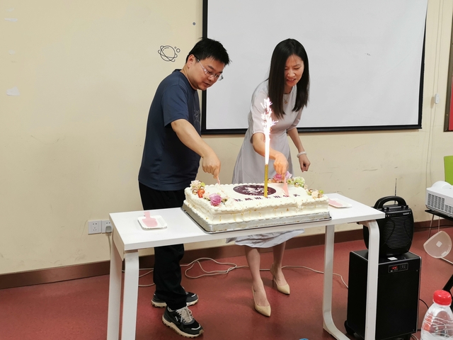 仪式最后,朱天昊和陆丹红共同切开预祝麒麟班辉煌明天的蛋糕。