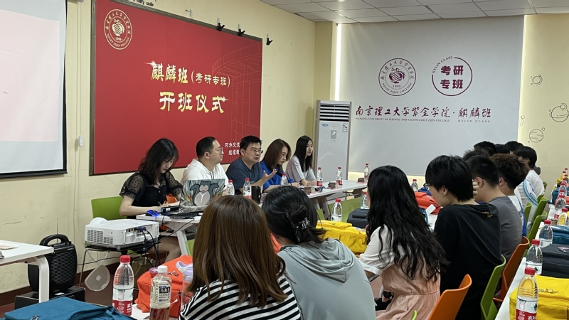 5月23日中午,我校2020、2021级麒麟班(考研专班)开班仪式在教A507举行。对外交流与培训处处长朱天昊、中试考研负责人陆丹红、麒麟班(考研专班)班主任黄冰珩及相关负责人员和学生出席仪式。