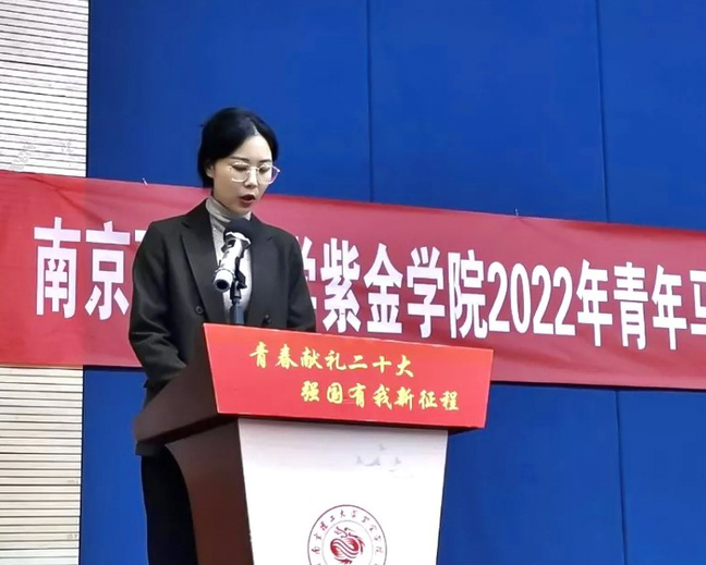 在商学院王欣怡同学的带领下,全体同学宣读了《紫金学子青春宣言》,字字铿锵有力、落地有声,无不彰显了紫金学子志存高远,激荡未来的决心,生动诠释了当代青年敢担当、敢作为的积极人生态度。