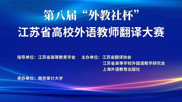 本次大赛由江苏省翻译协会、江苏省高等学校外国语教学研究会和上海外语教育出版社联合主办,南京审计大学外国语学院承办。大赛以《习近平谈治国理政》中、英双语版本为蓝本,考查参赛教师对中国文化、政治核心概念的理解和翻译技巧,同时引导参赛选手通过外语展现中国文化的国际影响力和感召力,以及中国形象在国际社会的亲和力。