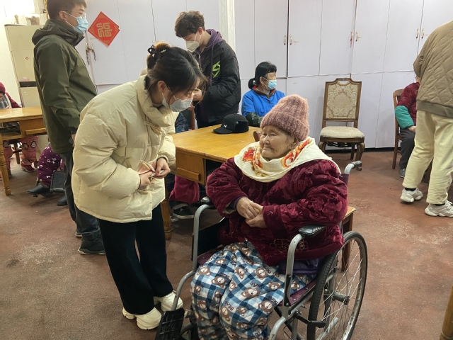 初到敬老院,支部党员同志们为老人送上慰问物品与水果,并向敬老院王院长了解了老人的基本情况。随后,同学们便在活动区与老人们亲切交谈,不一会儿老人们便和同学们熟络了起来,老人们脸上也洋溢着快乐的笑容。另一部分同学对敬老院园区开展卫生清扫、设施维修等工作,为老人们营造了一个更加清新、干净、温馨的生活环境。