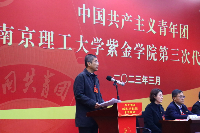 潘明烽作为兄弟高校代表致辞,他预祝我校第三次团代会圆满举行,并希望能与我校携手共进,共启新征程。就新形势下高校如何开展好共青团工作,潘明烽指出:一是吹响“党旗所指团旗所向”冲锋号;二是坚守“不忘初心服务青年”生命线;三是打造“青春建功贡献大局”新舞台;四是强化“改革攻坚从严治团”行动力。