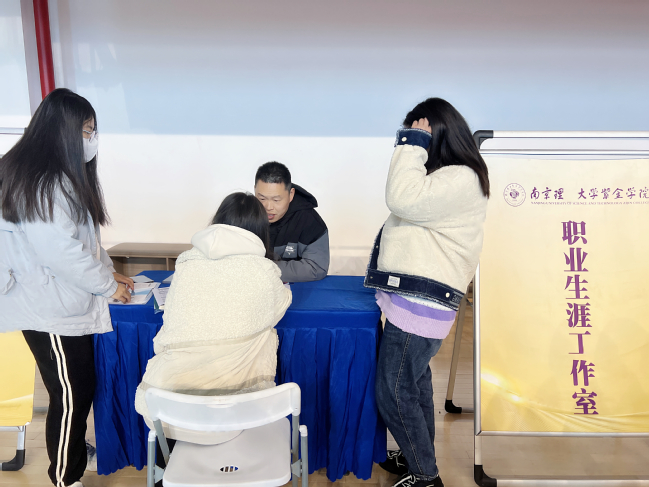场馆内160余家企业座无虚席,多个展位前都排起了长队。毕业生们井然有序地向心仪企业投递简历,主动与企业招聘人员进行交流,在面对问询时,他们沉着冷静,应答自如,尽力将自己优秀的一面展现给招聘人员。招聘会现场也设立了简历诊断台,由职业生涯工作室专业的指导老师对求职学生进行现场指导。工作室的老师从专业的视角出发,帮助前来咨询的同学完善简历。