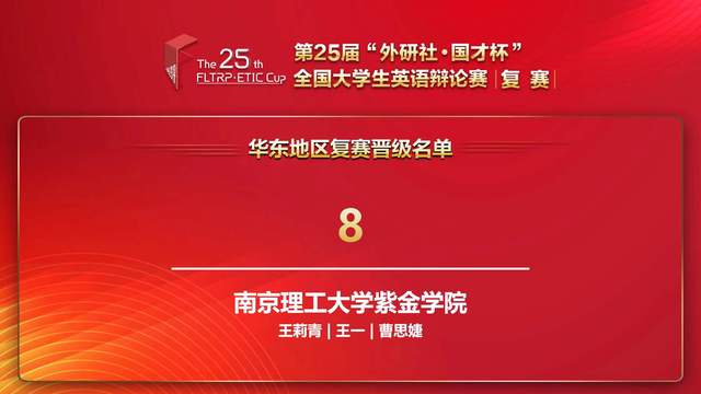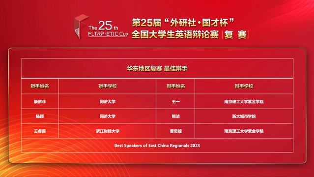 4月8日至9日,华东地区共有116支队伍参加了第25届“外研社•国才杯”全国大学生英语辩论赛的华东地区赛,经过五轮激烈角逐,34支队伍晋级全国总决赛。其中,星空彩票娱乐平台登录英语专业大三学生王一和曹思婕组成的辩论队,在王莉青老师的指导下,以第8名的好成绩荣获一等奖并顺利晋级全国总决赛。此外,王一和曹思婕两名辩手因为出色的个人表现,分别荣获“最佳辩手”称号。