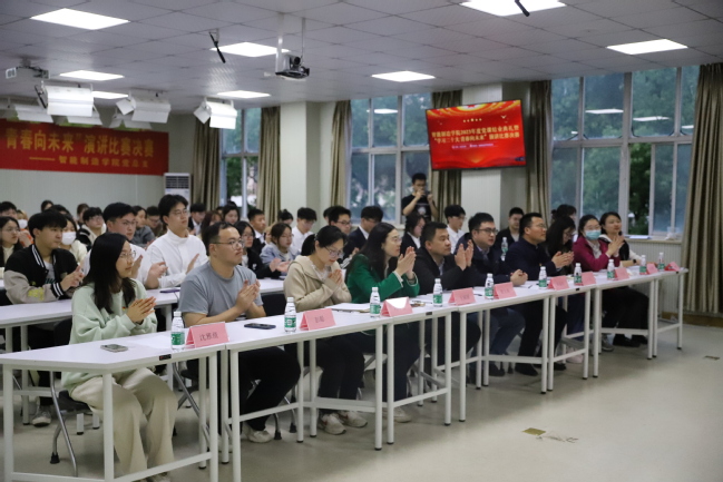 在五四青年节即将到来之际,为深入学习贯彻党的二十大精神,激发智能制造学院青年学生在新征程上踔厉奋发、勇毅前行的决心和斗志,进一步深化和展示党课学习成果,智能制造学院党总支于4月26日晚在教A202举办2023年春季学期党课结业典礼暨“学习二十大 青春向未来”演讲比赛决赛,智能制造学院党总支书记黄文涛、总支委员陆益军、王丽丽、王力、刘海艳以及本次党课培训班班主任杨琳老师、全体辅导员出席了本次活动。