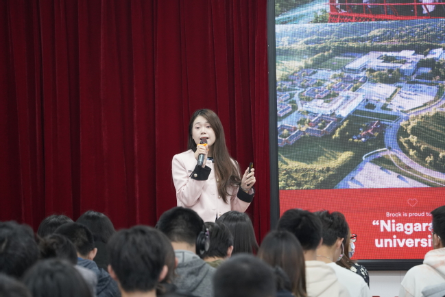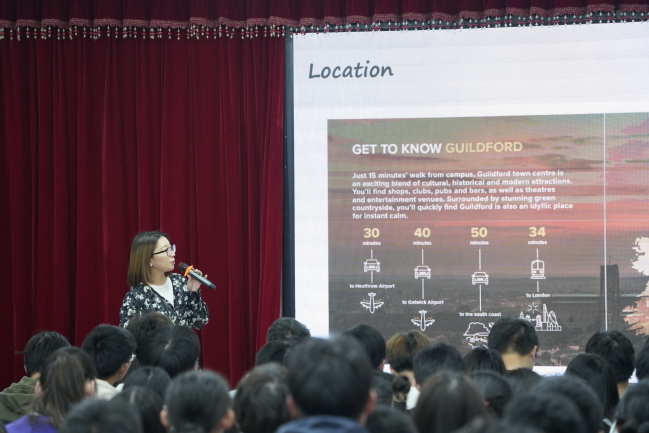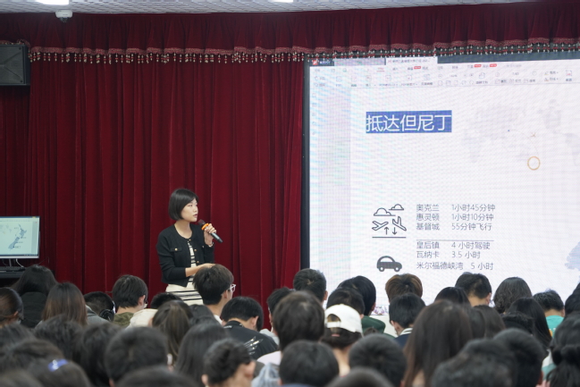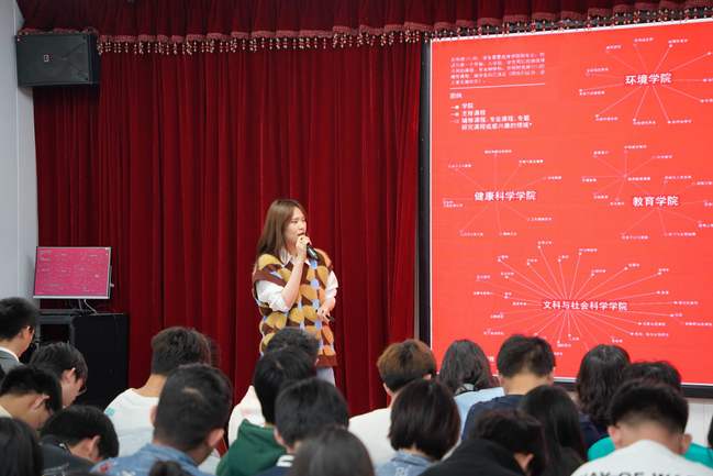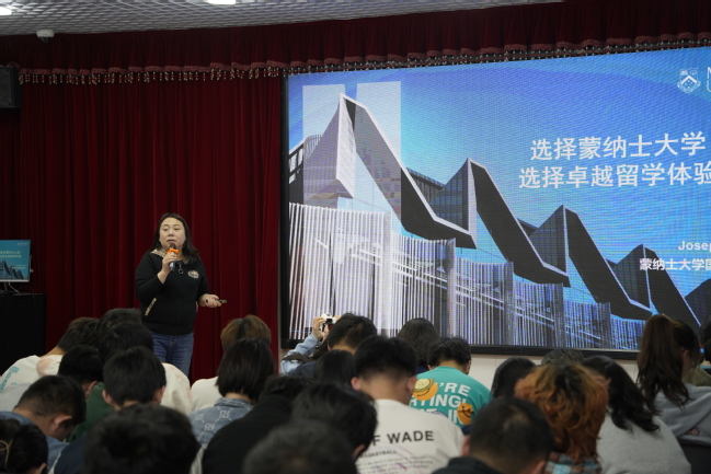 下午13时,海外名校招生宣讲会在体育馆3楼报告厅准时举行。各位招生官以“快闪”的形式轮流介绍了院校的地理位置、排名情况、专业设置、设施亮点、留学成本以及成绩要求等信息。其中,蒙纳士大学招生官Josephine Yao谈到,作为全澳规模最大的密集研究型大学,MONASH在墨尔本设有六个校区、同时拥有包括澳大利亚干细胞中心等100多个研究中心和17个合作研究所。谢菲尔德大学招生官Luke也向同学们展示了网红图书馆The Diamond、历史悠久的Firth Court等标志性校内建筑。