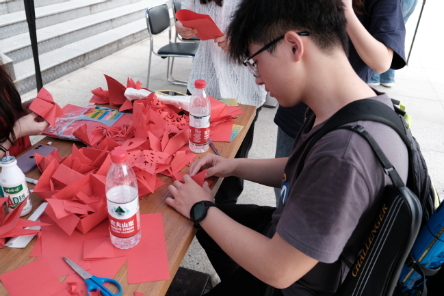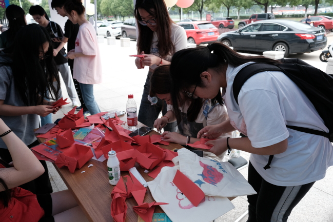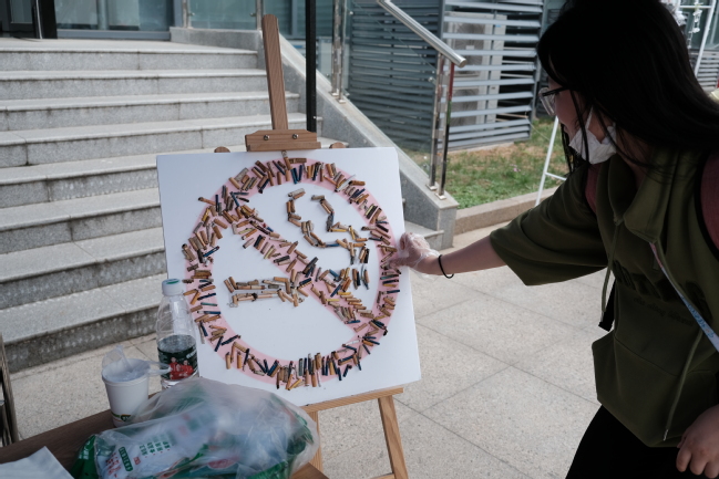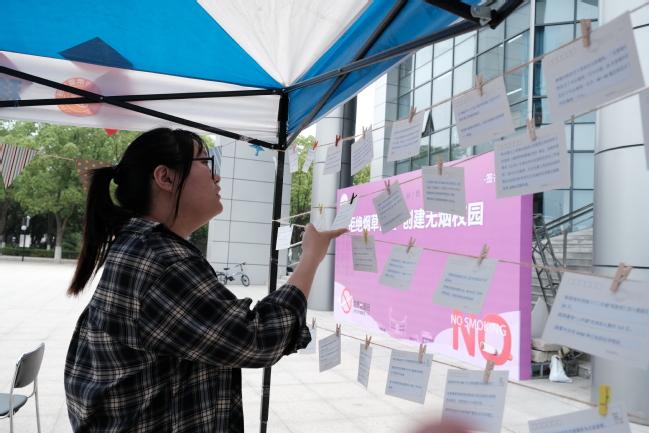 师生在签名墙处签到之后,就带着领取的集章卡分散到活动的各个摊位上,经过控烟书屋中回答控烟相关问题、烟头投壶中将香烟玩偶投递到指定篮筐、无烟绘袋中在空白帆布袋上描摹控烟图案、纸间乾坤中裁剪纸艺控烟标识、校园新颜中对校园中散落的烟头进行清理,最后得到抽奖机会和精美奖品。