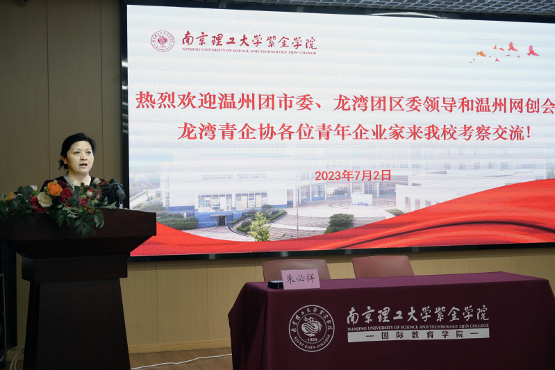 接着,来访嘉宾在体育馆二楼参观了高淳新校区实景沙盘,纷纷对我校未来的发展前景表示期待。在体育馆四楼报告厅,赵雪琴向来访嘉宾表示欢迎。她向来访嘉宾介绍了我校的基本概况、发展新格局、教育教学成果等内容。她指出,学校非常重视产学研合作工作,期待能与温州的青年企业家们在校企共建、产教融合等方面进行深入合作,也欢迎温州企业能够从我校发掘更多毕业生人才。