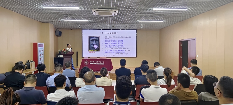 最后,南京理工大学经济管理学院朱必祥教授为来访嘉宾做了主题为《创新管理与领导力提升》的学术分享。他从管理、创新、领导力等几个与企业家密切关联的关键词出发,深入浅出地为嘉宾们带来了一场精彩的商业课程。