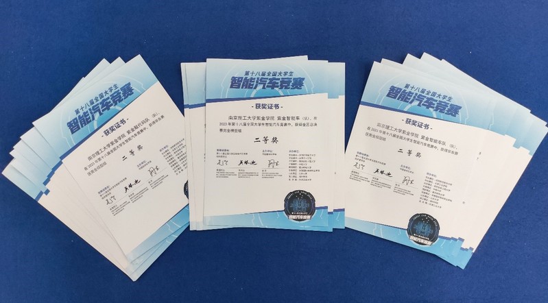 参赛学生在智能制造学院蔡隆玉、王京港等老师的悉心指导下,经过不懈努力,克服了种种困难,不断改进策略、优化代码、强化车身、提高成绩。经过激烈的角逐,紫金智能车队、紫金敲代码队在完全模型组比赛中获华东赛区二等奖,其中紫金智能车队以华东赛区第10名的成绩进入全国总决赛,最终取得完全模型组全国二等奖的优秀成绩。